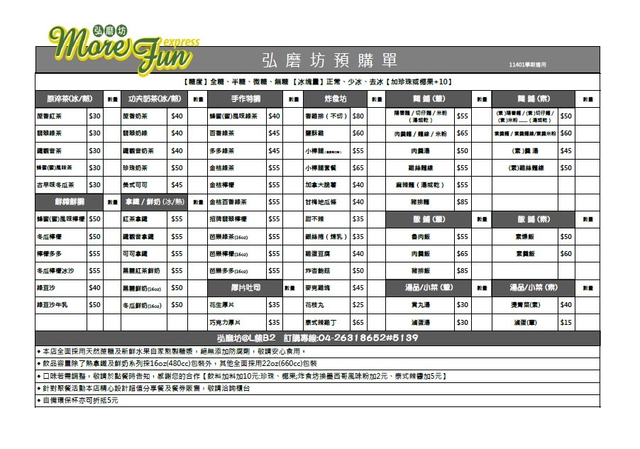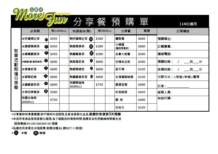 弘磨坊分享餐預購單(公告)